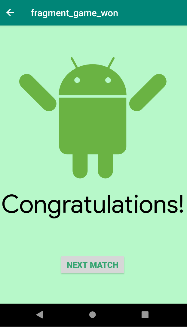 - NavController.navigate() 로 전달되는 매개변수 변경 : action ID를 GameFragmentDirections 클래스에서 얻은 actionGameFragmentToGameWonFragment() 로 변경!